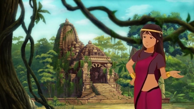 Tao est toujours en train de rire quand ils atteignent l'orée du Temple Mémoire. Ils aperçoivent alors le reste de leurs compagnons, qui les attendent sagement devant le bâtiment. Zia n'est pas là toutefois et Esteban trépigne encore avant, que, finalement, il distingue la forme de Rupang s'approcher. L'éléphant a lui aussi été décoré, arborant des peintures mauves sur le front et une superbe pelisse dorée. L'animal avance d'un pas lent, trop lent au goût d'Esteban, et il porte sur son dos Gunjan, Indali et Zia ! Le pachyderme s'arrête quand il est proche de l'élu puis son cornac et l'hindoue aident la promise à en descendre. L'inca a revêtu un sari rouge par dessus un haut violet, le résultat étant de toute beauté, à tel point que l'élu en perd tous ses moyens !