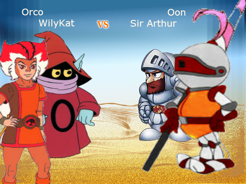 Pour aujourd'hui, je vous poste un drôle de VS fanart: Wilykat et Orco contre Sir Arthur et Oon.