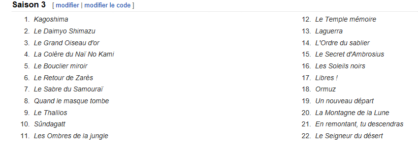 Wikipédia a ajouté deux épisodes de plus à la liste...
