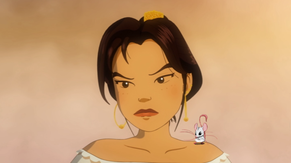 La conversation fut interrompue par un couinement étrange. Estéban tourna la tête et vit sur le tapis une petite souris blanche manifestement tombée de la poche d'Isabella. L'aventurière la ramassa prestement avant que l'hermine de Pablo ne se jette dessus. Elle tenta de calmer l'animal avec des paroles douces en la caressant, puis elle la remit dans sa cachette. Dans le silence qui s'était installé, elle leva les yeux et rougit en constatant que tout le monde la regardait.