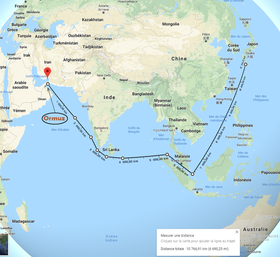 Bon parlons sérieusement il faudra m’expliqué comment le navire de Gaspar a pu parcourir 10 750 km en a peine environ une semaine…. Ca ne sent trop pas le truc forcé pour le réintégrer….. par contre qu’on ne me fasse pas dire ce que je n’ai pas dit, ce principe pour le retrouver comme ça n’est pas incohérent du tout, on a introduit qu’Ormuz été une escale pour tous les navire qui vont de l’ouest vers l’Est et inversement, donc c’est tout à fait logique qu’il passe par là, cependant il aurait dû y passé plusieurs semaine après…