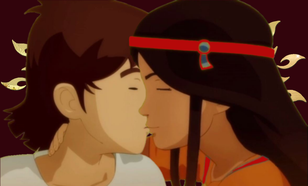 Devant l'incapacité de son bien-aimé à formuler une réponse, elle déposa un tendre baiser sur ses lèvres.