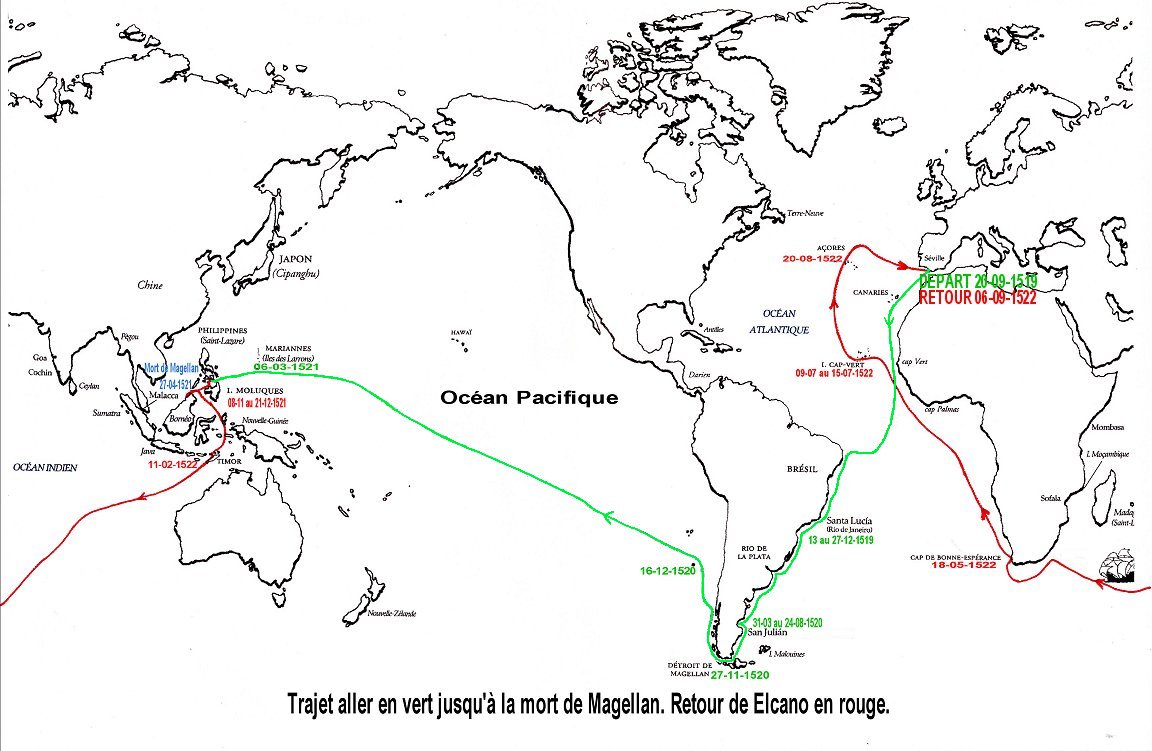 Même si c'était sur la route de Magellan (image ci-jointe), la zone possible reste assez large. Elle part de la sortie du détroit de Magellan et va jusqu'aux (futures) Philippines (où Magellan se fait tuer), en passant par l'archipel des Mariannes (pas très loin du Japon).