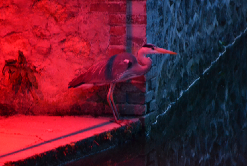 Un héron-pêcheur dans un lavoir qui ne se prend pas pour un raton laveur et s'est trouvé un "coin coin" de paradis! :-@