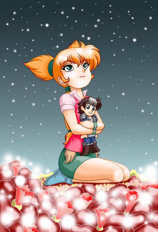 Aujourd'hui, c'est un fanart vectoriel de Flora, assise sur un tapis de fleurs, serrant dans ses bras une poupée de Jayce. Quand je suis tombée dessus, il m'a rappelé un poème sur Flora que j'avais écrit au début de mon adolescence...