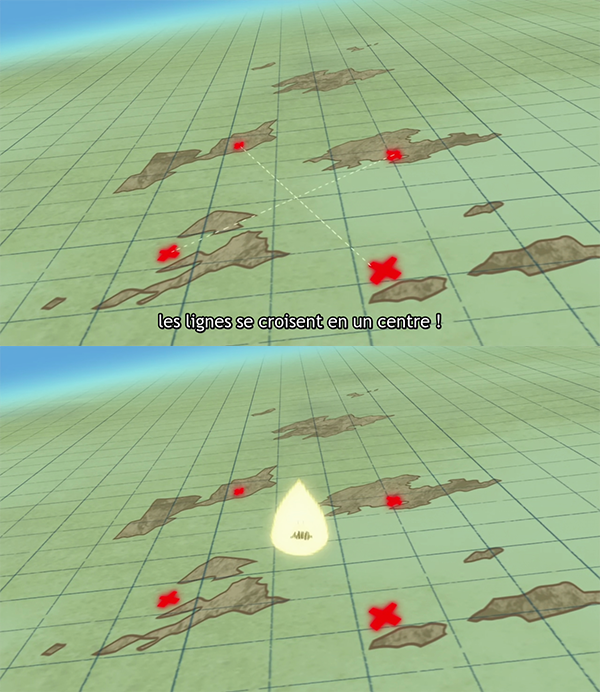 On vient d'apprendre dans l'épisode 769 que pour trouver le One Piece (l'équivalent de la Cité d'Or, c'est la quête ultime dans One Piece), il fallait trouver 4 artefacts (phénoglyphes) indiquant la position de 4 lieux... et que le One Piece se trouve à l'intersection des 2 diagonales