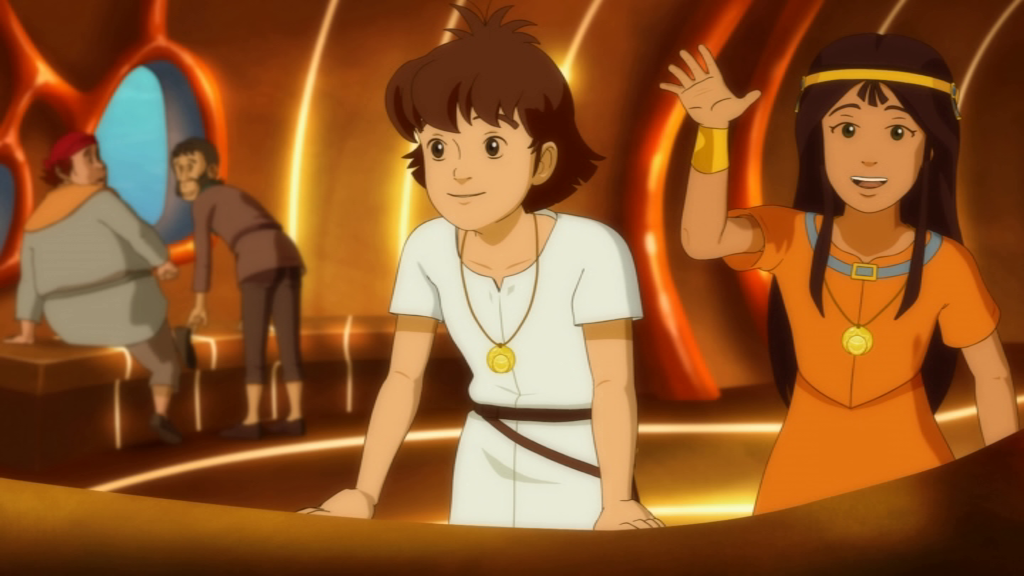 Il y a plein de passages avec les 2 enfants (qui se tiennent la main, se soutiennent). Notamment dans le bateau ou quand ils nagent.